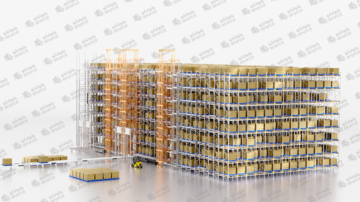 متكامل مع أنظمة إدارة وتشغيل المستودعات، مما يتيح تشغيلًا آليًا بالكامل مع تعظيم سعة التخزين وتقليل الاعتماد على العمل اليدوي.