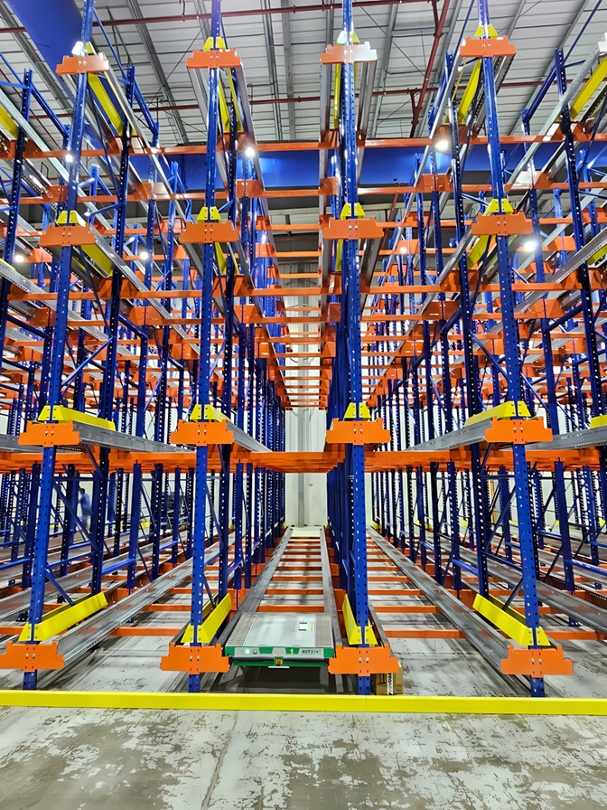 تتميز هذه الأنظمة بآلية عمل شبه آلية، حيث تتحرك المكوكات الكهربائية على قضبان داخل القنوات لتحميل وتفريغ المنصات بسلاسة. يتم تشغيل النظام بواسطة مشغل يستخدم رافعة شوكية لوضع المكوك داخل الرفوف، مع التحكم في العمليات بسهولة عبر جهاز لوحي.